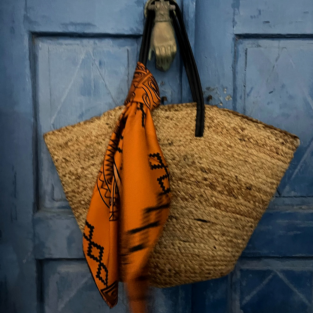Incorporar un pañuelo de seda en el asa de tu bolso es una forma sofisticada de añadir color a tu conjunto. Opta por colores estridentes como el Naranja o Fucsia para generar acentos. Además de darle un toque de estilo a tu bolso, tener un pañuelo a mano puede ser práctico para protegerte del sol o para un cambio inesperado de temperatura.