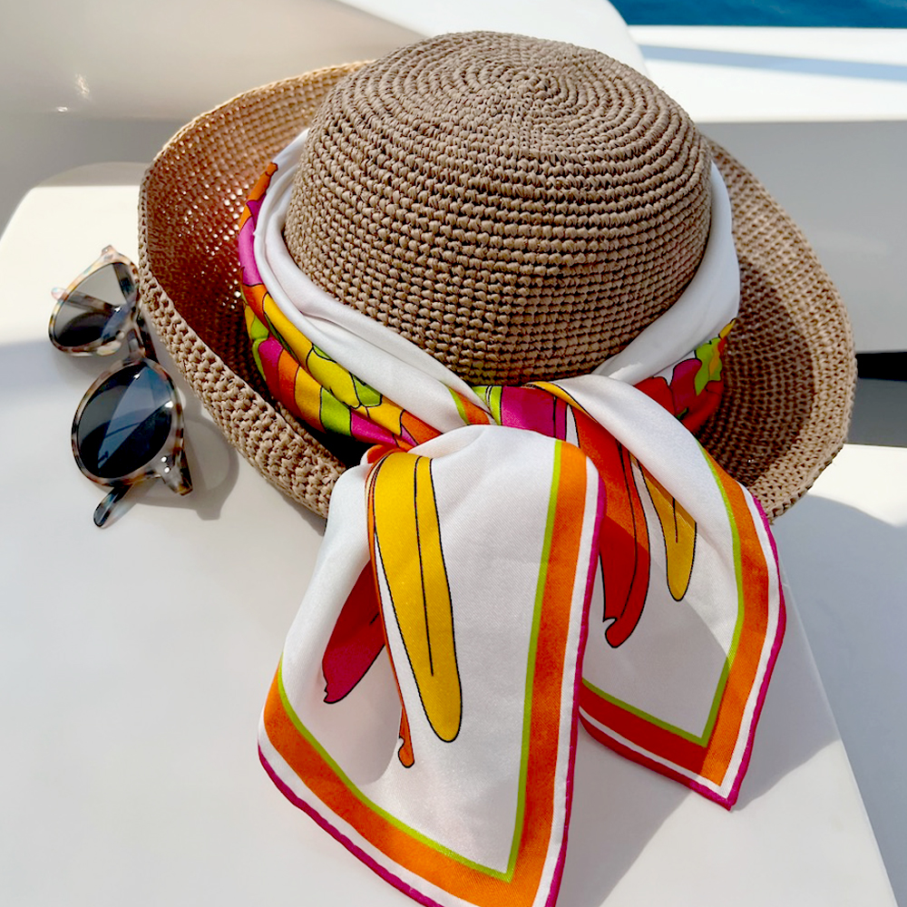 Todos nuestros pañuelos de seda natural con terminaciones hechas a mano son accesorios versátiles que pueden elevar instantáneamente tus outfits de esta temporada que recién inicia.